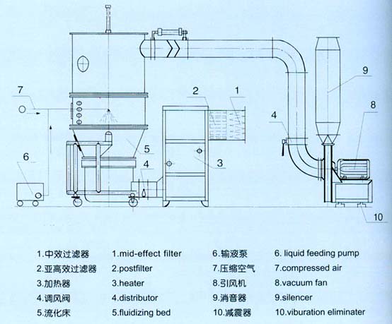 FL系列沸騰制粒干燥機所有與物料接觸部件全部采用不銹鋼制作,采用硅橡膠充氣密封圈密封, 采用二流式噴槍可控制顆粒大小。混合、造粒、干燥集中在同一密閉容器內完成,運作快速、高效,并避兔粉塵飛揚、泄漏和污染。FL系列沸騰制粒干燥機造型美觀,風阻小,無死角,易清洗,符合GMP要求。